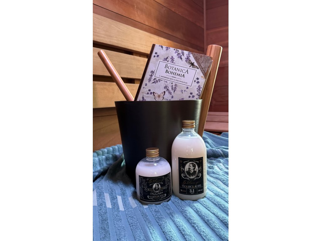 Složení kosmetického dárkového balíčku. Botanica Bohemia – premium krémový sprchový gel s olivovým olejem, extraktem z bylin, jogurtovou aktivní složkou a vůní levandule 200 ml. Je vhodný k mytí celého těla. Jde o unikátní kombinaci jemných mycích látek s blahodárnými účinky olivového oleje, jogurtu a extraktů z kopřivy dvoudomé (Urtica dioica L.), heřmánku pravého (Chamomilla recutita L.), břízy bílé (Betula alba L.), měsíčku lékařského (Calendula officinalis L.) a šalvěje lékařské (Salvia officinalis L.) na pokožku. Obsahuje mléčné frakce bohaté na proteiny, fermentované jogurtovými kulturami (Streptococcus thermophilus a Lactobacillus bulgaricus) s obsahem laktózy, vitaminu A, vitamínů skupiny B a minerálů.