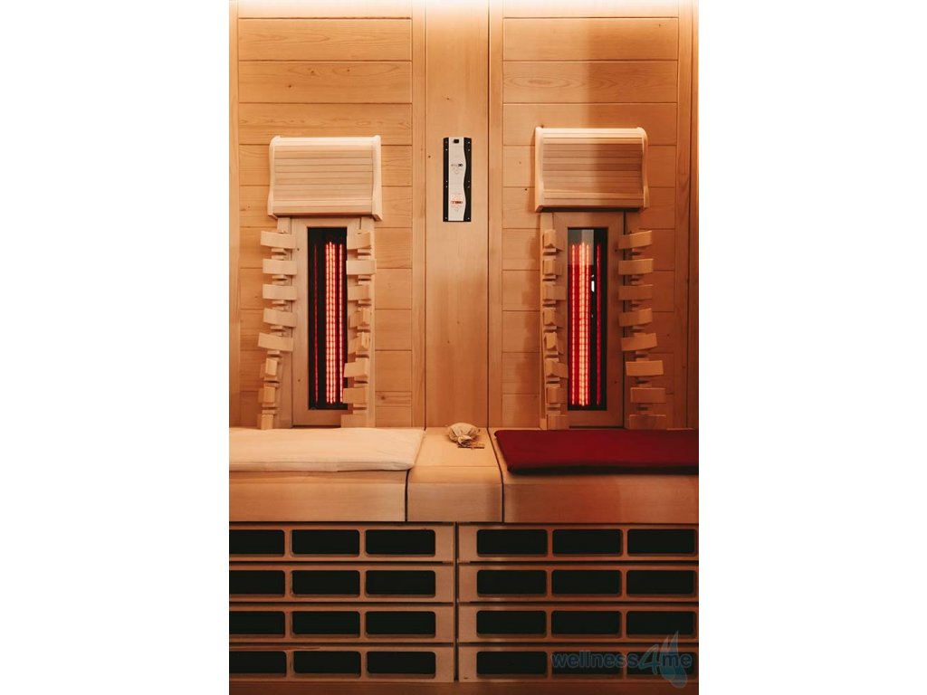 Dvě oddělené části opěrky se instalují z obou stran podél infrazářiče a umožňuje se tak pohodlně opřít, aniž by došlo k přímému kontaktu těla s zářičem.