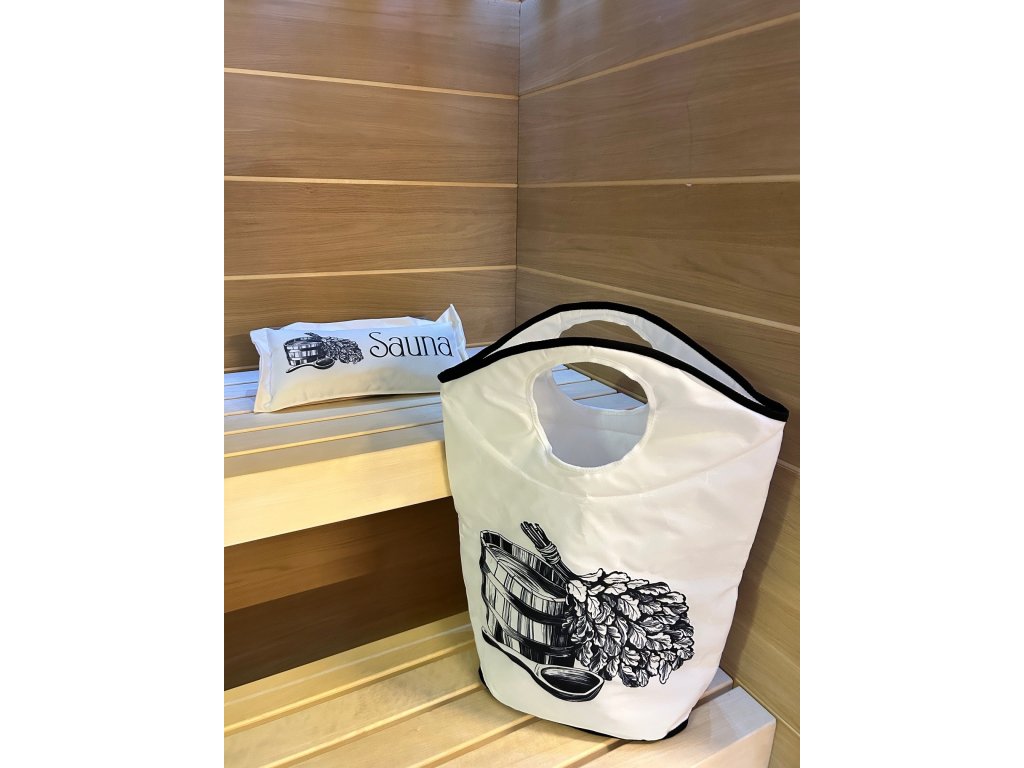 Elegantní motiv Classic Sauna, potištěno v Praze a ušito na Vysočině