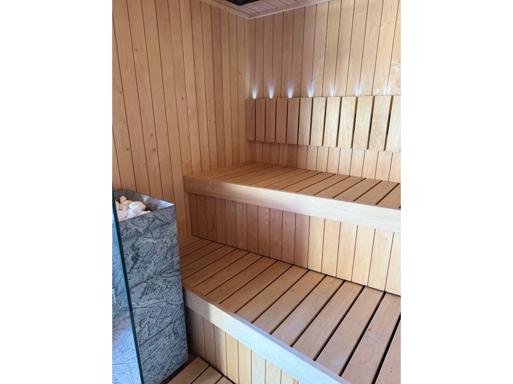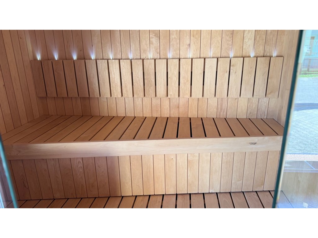 Vnější i vnitřní obklad: Palubky z olšového dřeva – jemné na dotek, minimálně smolnaté, ideální pro saunové prostředí