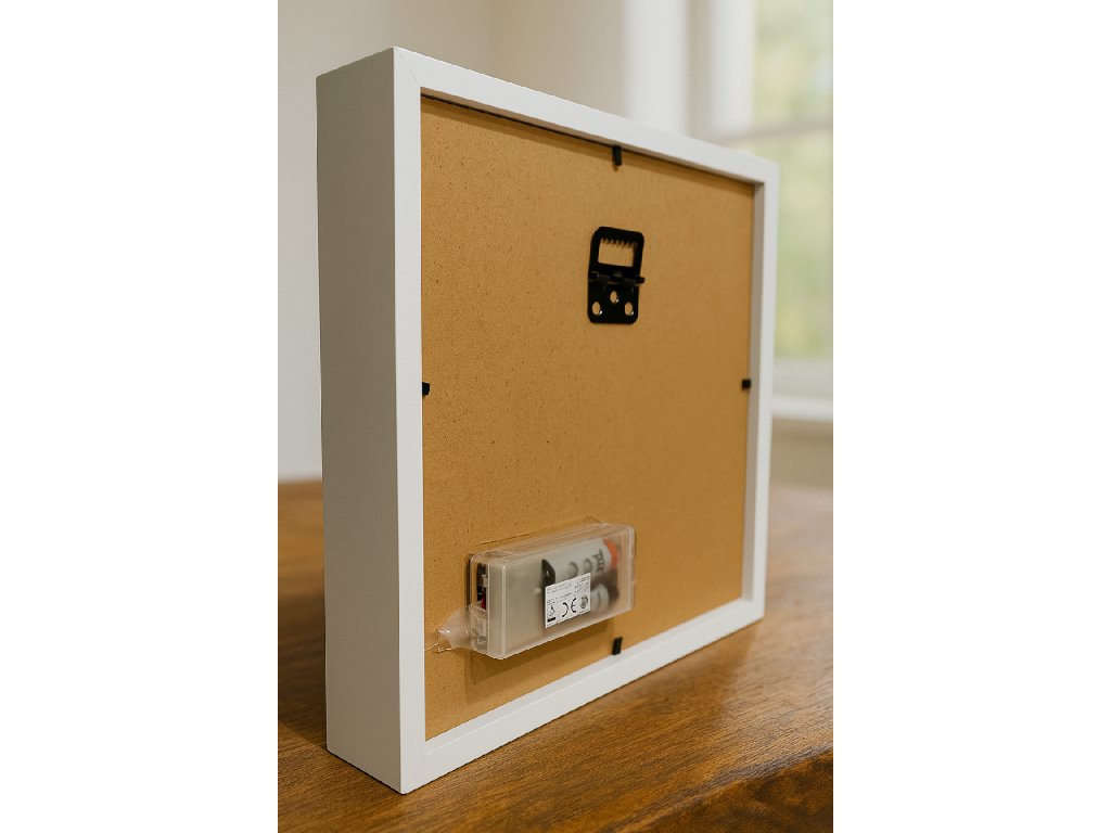 Materiál - Dřevěný lakovaný rám, sklo, papír, LED světla na baterie