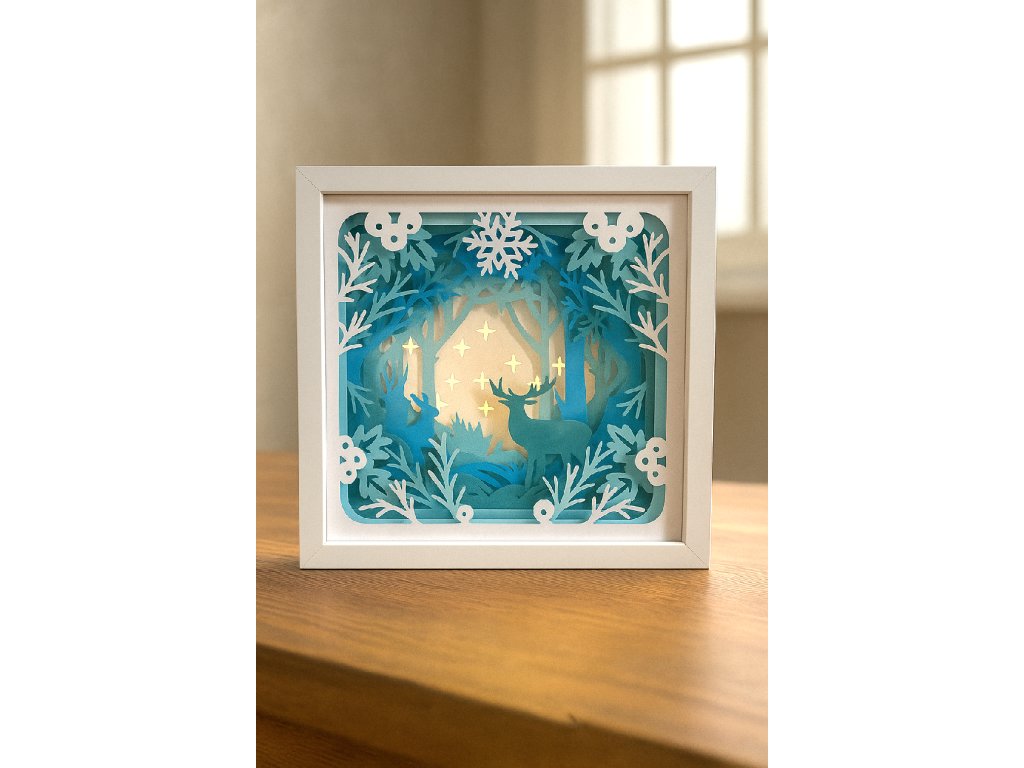 Každý Světlobraz je originál, který vyrábím z několika vyřezaných vrstev prémiového papíru a pečlivě je skládám do prostorové světelné scény. Dbám na to, aby z každého kousku byla cítit poctivost a klid ruční práce.